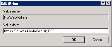 - From the configuration page, browse to the Quarantine RSS Feeds. The addresses of the feeds should now reflect the changes performed in the registry.