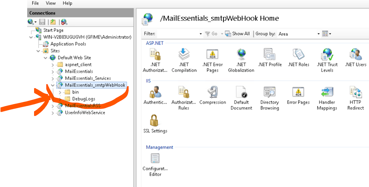 /MailEssentials_smtpWebHookas seen below. You can also reach the following page via this path: Press Win + R → typeinetmgr→ Enter. - Check that no local firewall or proxy blocks